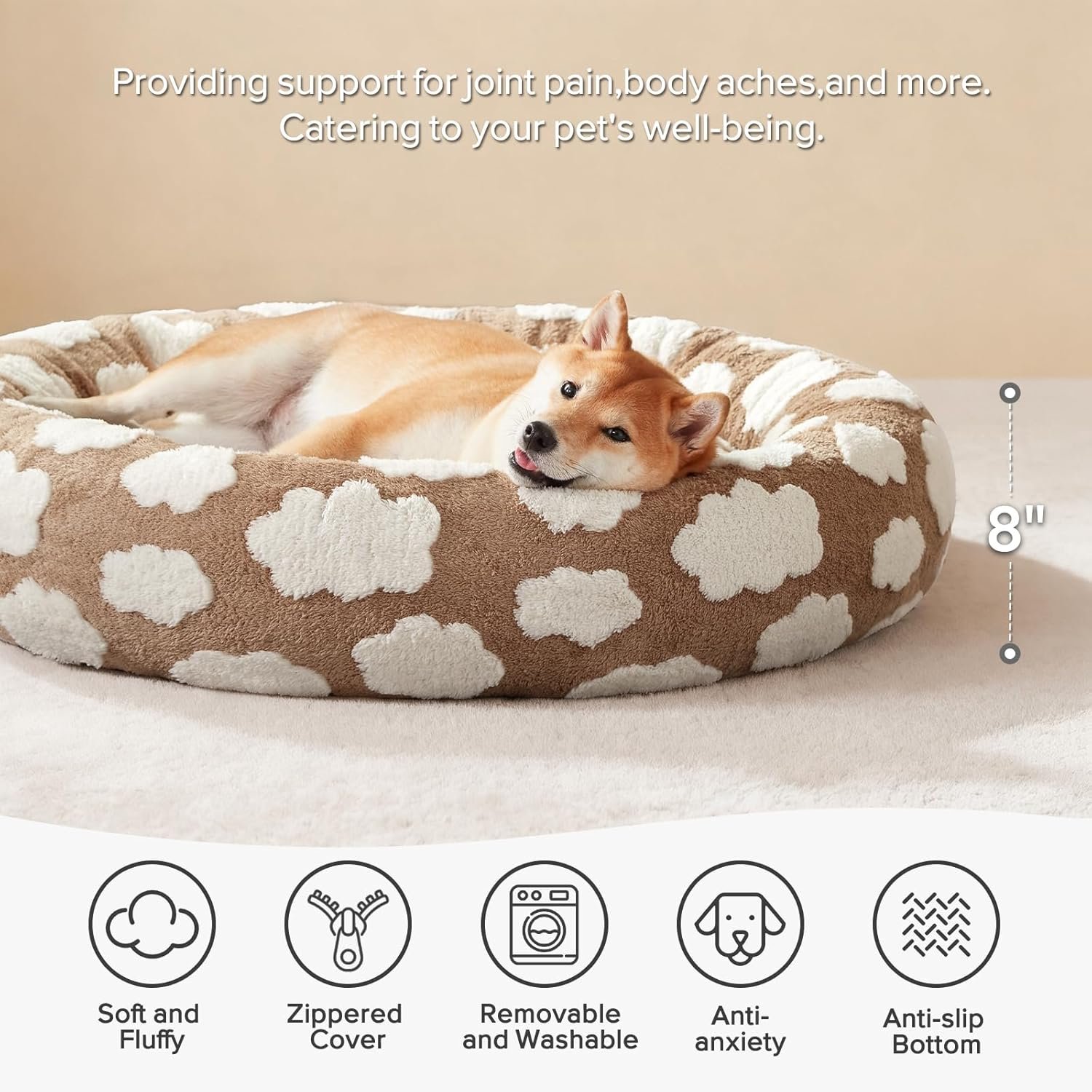 - STYLISH DESIGN: Our cute dog bed featuring Cloud patterns, this aesthetic pet bed doubles your apartment vibe. Combines soft fabric with premium chopped foam filling that maintains its shape while providing the cloud-like softness for your pet’s, perfect for dogs seeking snuggles and warmth.