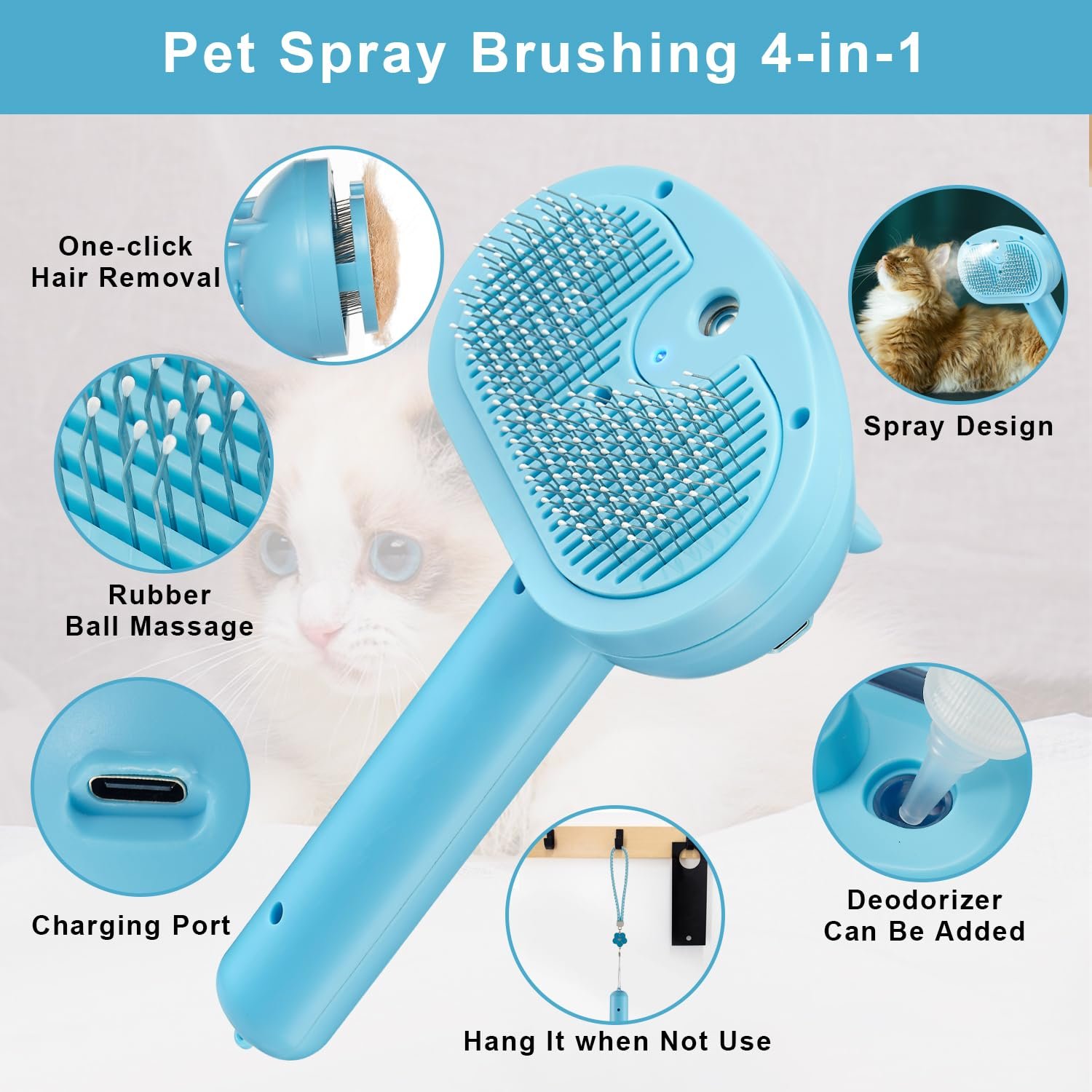- Spray Cleaning: Equipped with a water tank and LED blue light, the brush gently Spray and loosens stubborn pet hair for effortless grooming.the LED blue light sterilization and disinfection