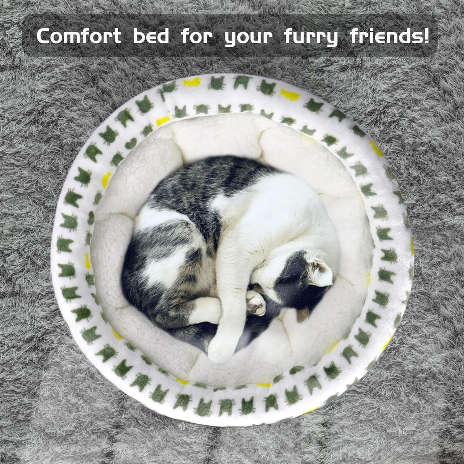 - 🐶CLAMING & ANXIETY🐱 :Ideal for pets to curl up or sprawl, the raised rim around of round kitten&puppy bed provides warmth&safety to your pets. Our calming kitten&puppy bed helps your pup to calm down faster, relieve anxiety, and sleep well. What a perfect gift for your pal!